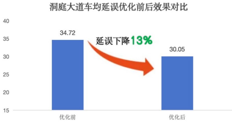 洞庭大道車均延誤下降13%,平均車速提升18%。