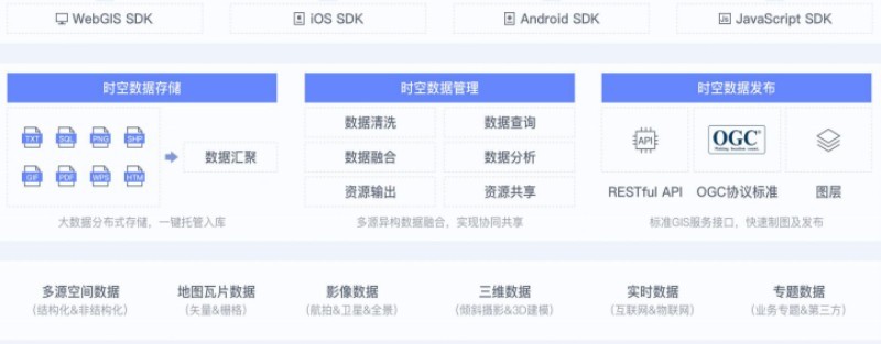 時空數據管理:提供時空數據管理控制臺圖形界面,通過基礎的操作可以快速實現數據對接、圖層管理、服務發布。