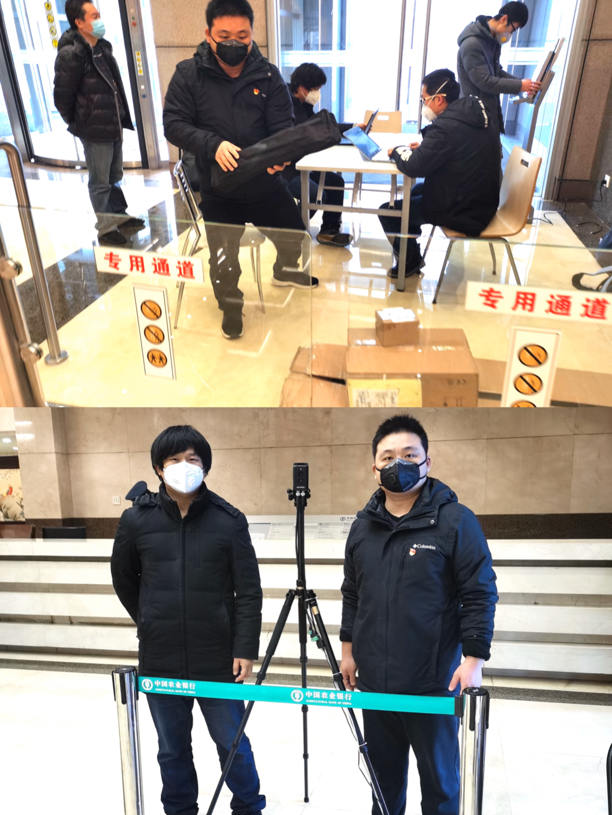湘江智慧作為中國農業銀行總行機關大樓的安消防智能化建設的承建方及安防維保商。在疫情發生后,第一時間與總行機關疫情防控小組取得聯系,積極聯絡戰略合作伙伴海康威視,由公司駐京優秀黨員、北京分公司總經理陳李同志親自帶隊,在疫情期間協助配合農行總行部署和升級熱像測溫系統,在2月4日完成了總行機關大樓出入口的第一套熱像測溫系統部署工作。截止目前,中國農業銀行總行機關各大樓出入口均已部署熱像測溫系統,并率先在行業內實現了多種測溫系統并行、測溫大數據分析統計、戴口罩人臉檢測功能,為農行總行的科技戰疫工作保駕護航。