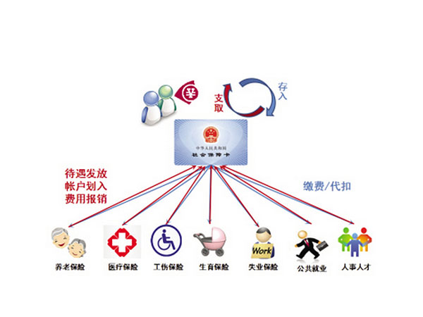 社會保障卡作為政府公共服務新載體,既是群眾享有人力資源社會保障權益的基本身份證件和辦理業務的有效電子憑證,也是具有現金存取、轉賬、消費等金融應用功能的銀行金融IC卡。它同時集身份認證、信息查詢、社保繳費、待遇領取、費用結算以及金融功能等多項功能于一體的新載體。