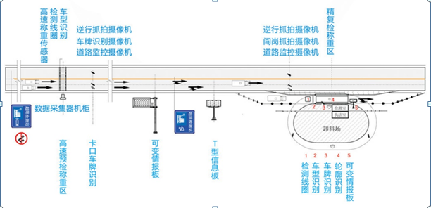 在重要路段安裝彎板、石英、壓電等高速動態稱重傳感器、車型識別傳感器、輪廓識別單元、卡口車牌自動識別單元、LED信息顯示屏等設備,獲取過往貨運車輛稱重檢測信息,按照超限運輸車輛行駛公路管理規定(交通運輸部令2016年第62號),自動判別車輛是否超限超載,對超限超載車輛進行執法操作,并可將違法信息抄告至公安、工商、運營等部門,節省人員開支實現非現場執法。