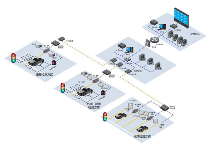 高清電子警察系統主要功能是在紅綠燈交叉路口通過對過往車輛進行抓拍和號牌識別來進行車輛違章自動監測取證。通過建設該系統,一方面針對交叉口的多種違法行為特別是機動車闖紅燈行為進行監管和處罰,保證交叉口的交通通行安全,加強交通參與者交通安全意識;另一方面,交管部門需要充分掌握交叉口交通運行情況,對交通流進行合理的組織疏導,保證交叉口的交通通暢。